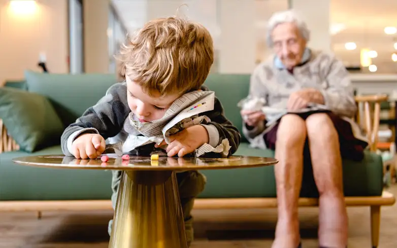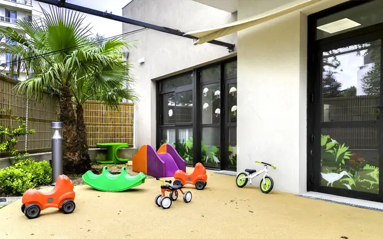 Dans cet espace spécialement réservé et aménagé pour notre micro-crèche, le programme pédagogique spécifique élaboré avec les équipes de la résidence Senior, est articulé autour d’un projet intergénérationnel qui a pour vocation de créer une véritable “maison à vivre” ! Sont ainsi organisés avec les personnes âgées, des activités de jardinage, de lecture, de musique, des événements, des sorties, etc.